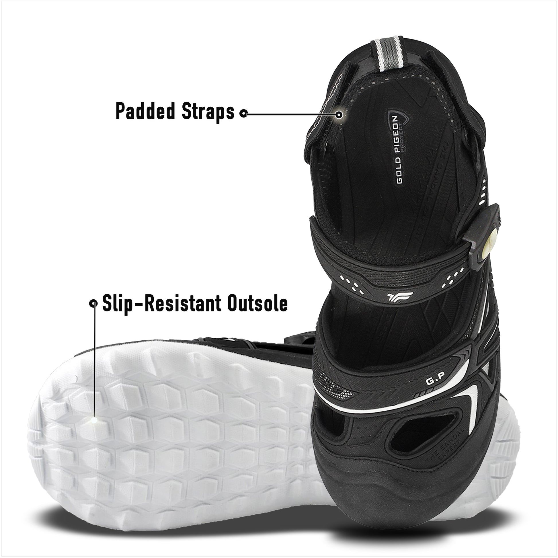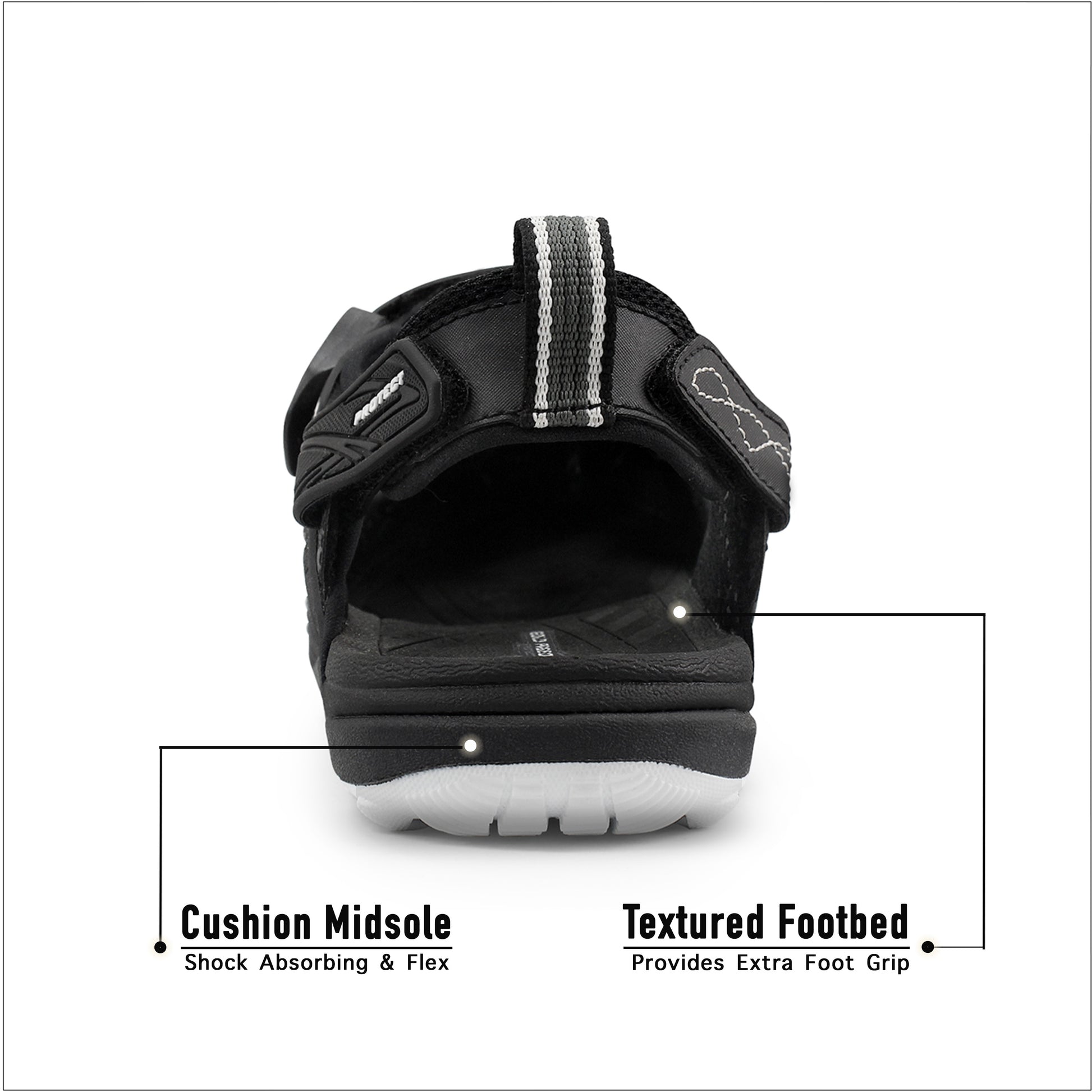 - Textured foot bed provides extra foot grip when wet.